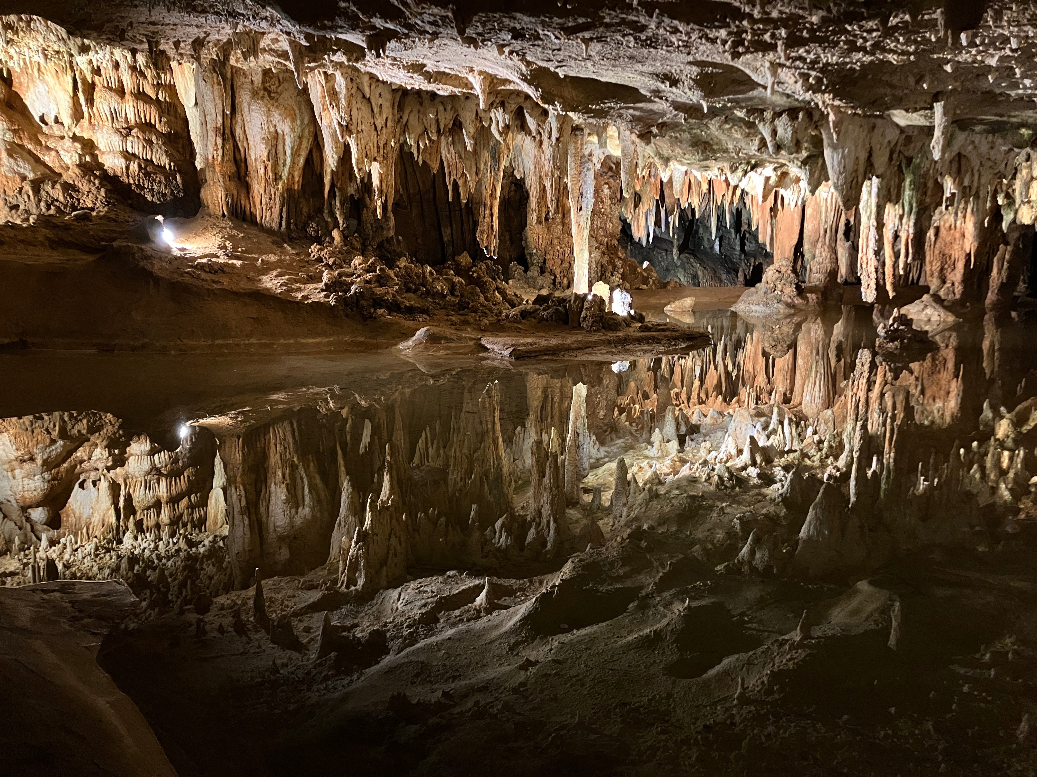 Shenandoah is also a place of great natural beauty. One only need to drive from one town to the next to pass over the Blue Ridge Mountains and feel amazed. We drove to the top of one, through the places where people stay in cabins in the summer. It was vast and splendid and incredibly American—everything I have seen in the movies, right there, in full brilliant reality. We went into the Luray Caverns and were simply amazed by the immensity. The darkness stretched out before us while the lights caught the millions-years-old stalactites and stalagmites, orange and white. Nature is fractal. These structures resembled trees and mountains and rows of monstrous teeth. One of them is called the Ghost of Pluto. Another cave resembles a cathedral. The reflecting lake is something science fiction can never match. Despite being a small place, it has a great vastness of its own.1 Parts of it looked like the landscapes in John Ford movies. It takes more than a century to produce one cubic inch of growth. Even the smallest spike has a timelessness I could not quite imagine. What has poetry against this? What need of human imagination in such a place? That was then and it was now and we were merely passing through.