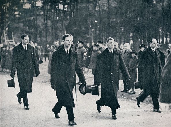 As George V’s cortege clattered through New Palace Yard in the Palace of Westminster, where the old king’s body was to lie in state, the Maltese Cross on top of the imperial crown, which contains a sapphire taken from the ring of St Edward the Confessor, shook loose and fell to the ground. “Christ”, said the new king, Edward VIII, “what will happen next?” The cross’s fall was taken as a bad omen. We don’t think of 1936 as a time when people still took omens seriously. In this case, they should have done. Less than a year later, Edward abdicated. He was the most troublesome royal since before Queen Victoria, undermined the stability of the monarchy, and constantly threatened political trouble.