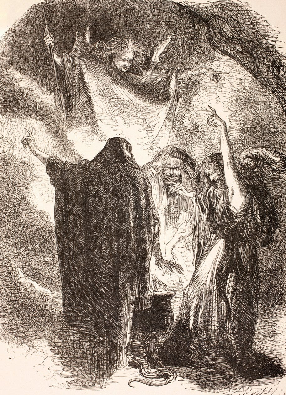 This is the centre of his tragedy. It is never made clear whether the weird sisters cause the events of the play, or merely predict them. They are the dance of time, not the creators of events. Macbeth’s fault is not within his times, but within himself. He reacts to their prophecy with ambition . He arrives having already coveted what they tell him will happen. He “starts” (both in the sense of jumping with alarm, and of beginning his murderous plan: he starts his time) because he is alarmed that they know what he really desires. He never realises, until it is too late, that “Time, thou anticipatest my dread exploits.” In this confession of his problem, we hear the echo of poor mad Lady Macbeth—, “What’s done cannot be undone.—To bed, to bed, to bed!”