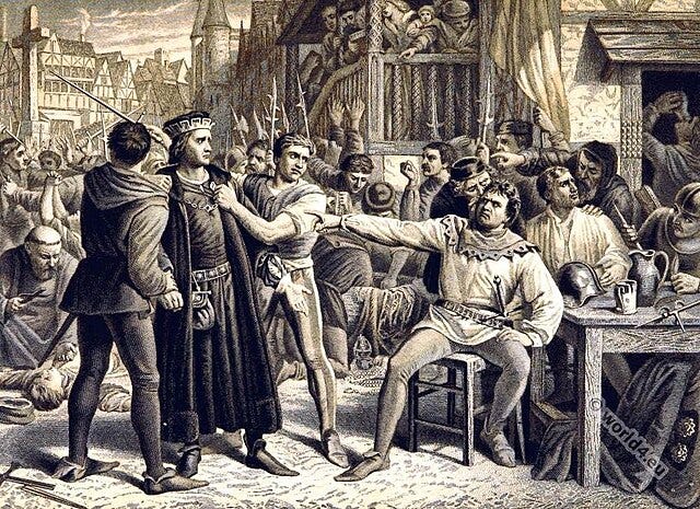 This is why Jack Cade’s scenes in The Second Part of Henry VI are so often remembered: because they contain an early hint of the essence of Shakespeare’s dramaturgy: the mingling of the serious and the comic. The rebellion scene arrives upon the beleaguered reader with the refreshing sensation of a window being opened in a room for the first time in several weeks.
